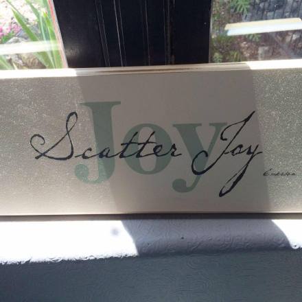 This summer I found a sign that attracted me in a thrift shop in Breckenridge where I was shopping with friends. Several of those friends took the time to point the sign out to me. Somehow, they knew that I would love it. Although I didn’t end up buying it because I didn’t want to tote it around town and back home, I snapped a picture of it. It said, simply, “Scatter Joy.” I have adopted that simple message as my personal motto.